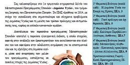 Το Πρόγραμμα Μεταπτυχιακών Σπουδών στην Δημόσια Υγεία εγκαινιάζει το 1ο Ενημερωτικό Δελτίο που έγινε με την επιμέλεια φοιτητών του μεταπτυχιακού. Σκοπός του ενημερωτικού δελτίου είναι η δημιουργία μιας πλατφόρμας επικοινωνίας, με τρέχοντα επιστημονικά θέματα, πρόσφατες δημοσιεύσεις, καθώς και άλλες εκδηλώσεις.