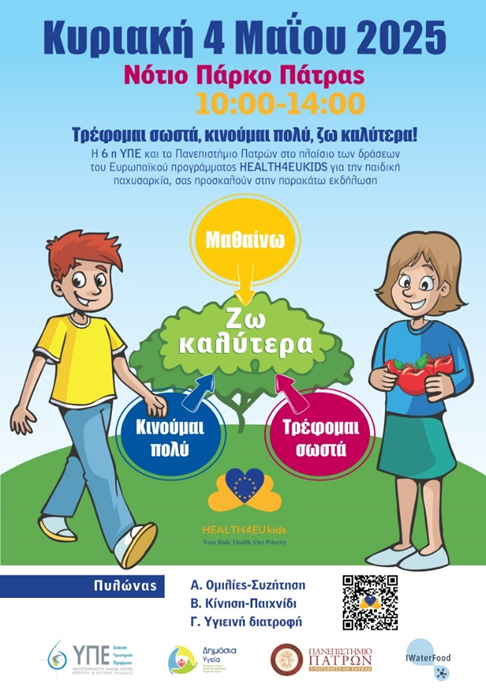 Η εκδήλωση ενημέρωσης και ευαισθητοποίησης για την παιδική υγεία με τίτλο «Τρέφομαι σωστά, κινούμαι πολύ, ζω καλύτερα!», που πραγματοποιήθηκε την Κυριακή 4 Μαΐου 2025 στο Νότιο Πάρκο Πάτρας στο πλαίσιο του ευρωπαϊκού προγράμματος HEALTH4EUkids, σημείωσε μεγάλη επιτυχία και ενθουσιώδη συμμετοχή. Με την ενεργή παρουσία οικογενειών, παιδιών, επιστημόνων υγείας και εκπροσώπων της τοπικής κοινωνίας, η εκδήλωση…
